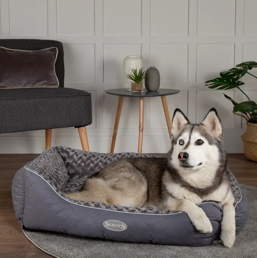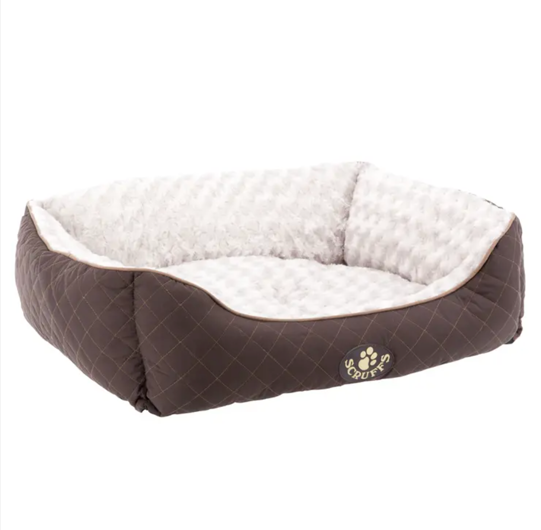 Offre à ton chien un espace cosy avec le Wilton, un couchage chic et confortable. Son tissu matelassé en motif losange et son intérieur en peluche douce offrent chaleur et cocooning. Le bord cousu de couleur camel et le logo Scruffs apportent une touche élégante à son coin sommeil.